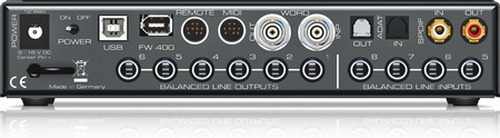背面,我們從左依次來(lái)看,UCX和UC都不能使用USB獨(dú)立供電,都必須接駁電源。左下方的6路平衡式模擬線路輸出能夠滿足您的5.1環(huán)繞聲的制作需求,這沒(méi)有任何區(qū)別。左上方,UCX兼有USB2.0和火線400接口,為用戶提供了靈活的選擇性。