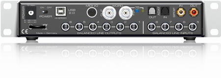 正面的1,2路輸入沒(méi)有區(qū)別,都是多用的,既可以插話筒的卡農(nóng)接頭也可以插大三芯作為線路輸入。3,4路輸入既可以插普通大三芯也可以插電吉他電貝司等樂(lè)器。看上去似乎沒(méi)什么特別的,但是重點(diǎn)在于兩個(gè)MIC輸入,UCX采用了同UFX相同的話放單元,該單元使用了RME Micstasy的核心技術(shù)(并行轉(zhuǎn)換技術(shù)——每個(gè)話放單元采用兩個(gè)模數(shù)轉(zhuǎn)換器進(jìn)行并行模數(shù)轉(zhuǎn)換,由此可獲得更佳的信噪比及寬動(dòng)態(tài)),能夠進(jìn)行65dB的數(shù)字增益控制(1dB為最小調(diào)整單位,較大調(diào)整范圍55dB)。這給UCX帶來(lái)了更好的音質(zhì)。