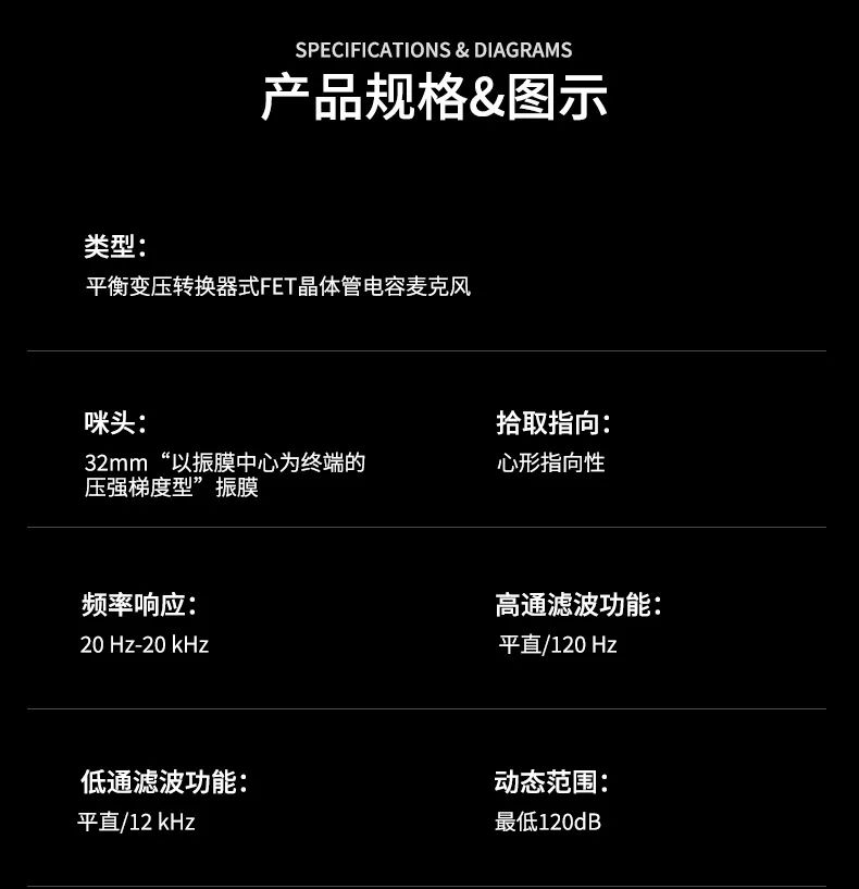 該麥克風(fēng)的咪頭中采用了經(jīng)由手工精調(diào)的32mm大振膜